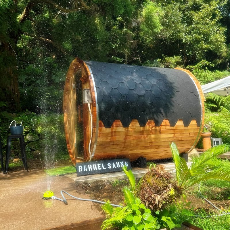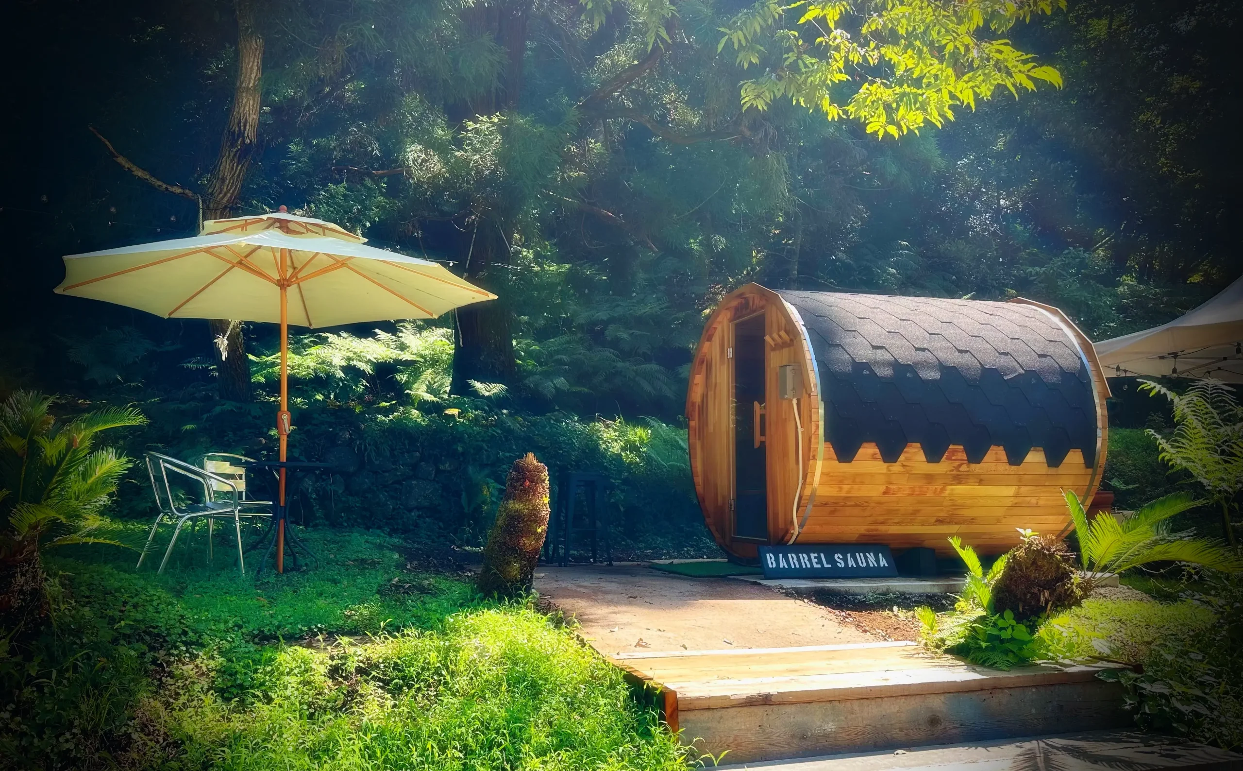 キャンプ泊なのにホテルのような癒しの時間を過ごしていただくために、本場フィンランド伝統の屋外型サウナをご用意しております。体を芯から温めた後は、オープンエアのシャワーやジャグジーで整えたり、敷地内を流れる川に飛び込んで冷水浴も楽しんでいただけます