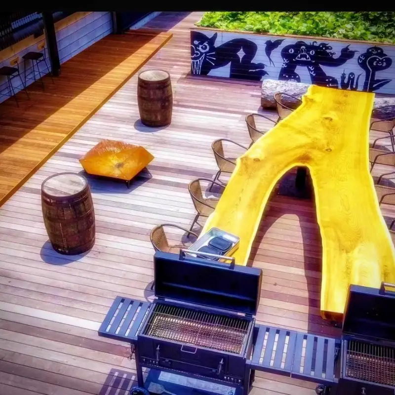 本格的なBBQコンロ、そして悠久の時を刻む樹齢500年の吉野杉で仕立てられたテーブルを囲みながら、森がもたらす贅沢な時間を心ゆくまでご堪能ください。