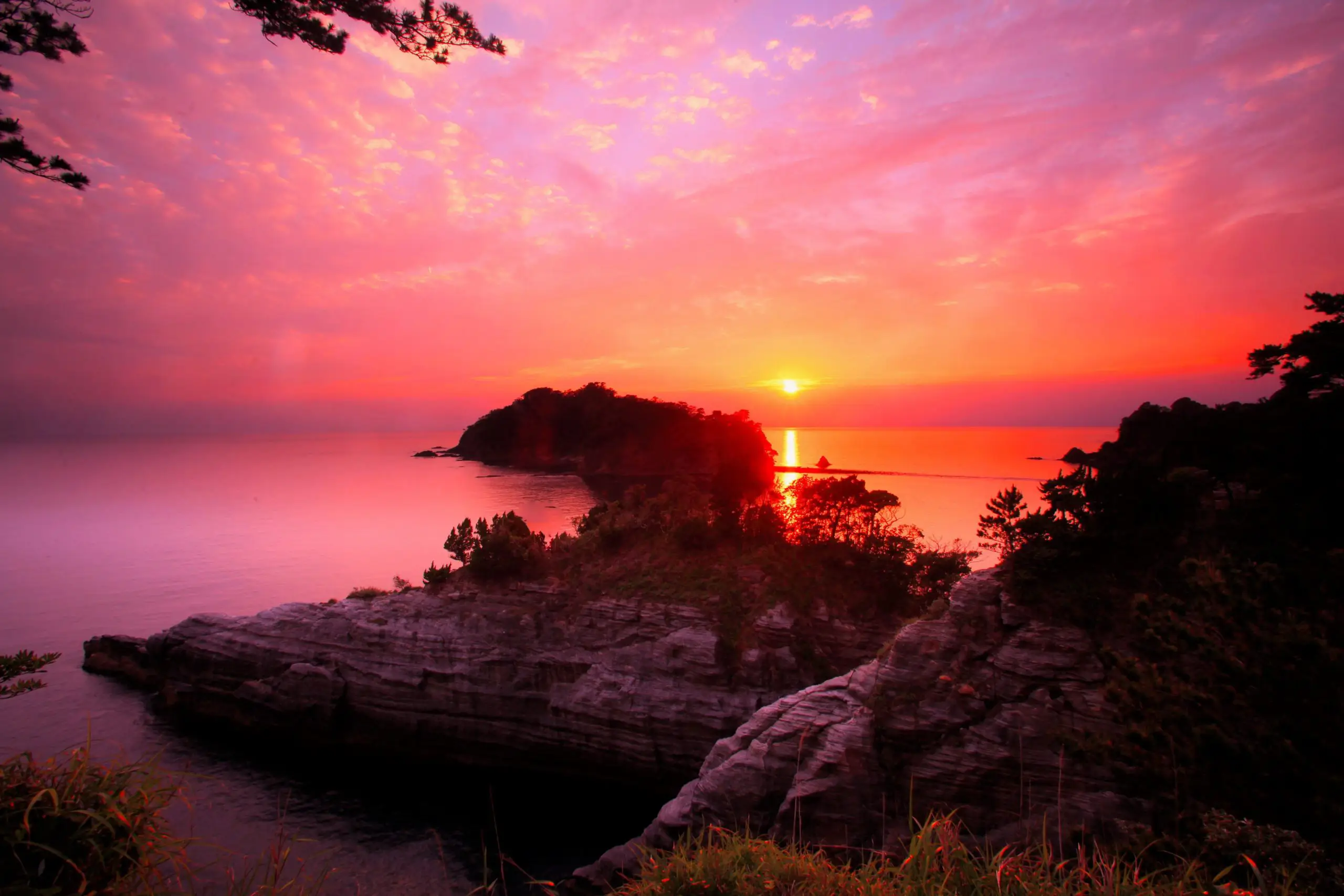 美しい海、燃える夕陽、表情豊かな海岸線。