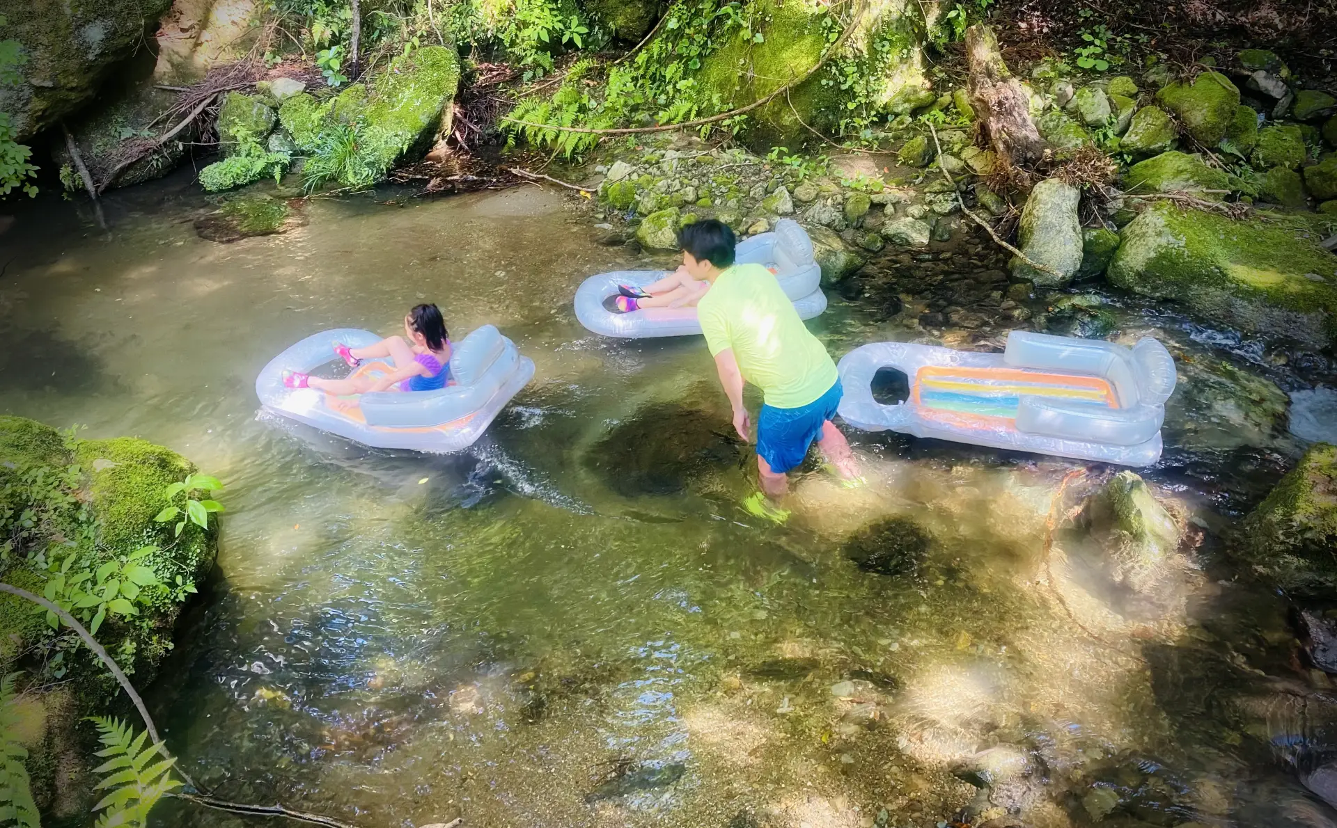 敷地内を流れる冷たく澄んだ沢は、山から滲み出たばかりの天然水。せせらぎを聴きながら読書にふけるもよし。サウナで熱った体を冷やす冷水浴にも最適。蛍舞う夏の夜はとても幻想的です。