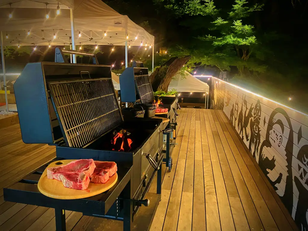 夕食は、バーカウンターがあるメインデッキオープンスペースに用意されている本格BBQコンロをお使いいただき、お客様ご自身で調理を楽しめるBBQスタイルです。